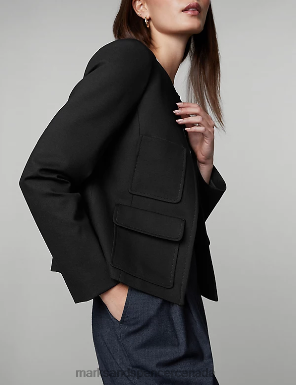Marks and Spencer sale - Women Black Clothing Marks & Spencer Jersey Collarless Jacket 20VTD243