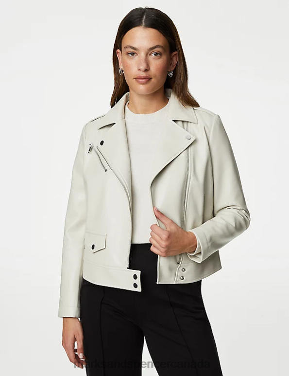 Marks and Spencer sale - Women Neutral Clothing Marks & Spencer Faux Leather Biker Jacket 20VTD405