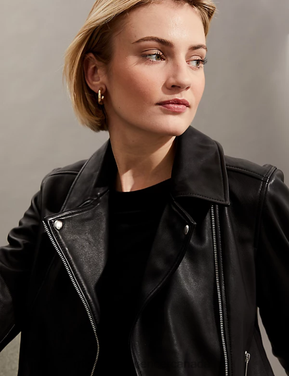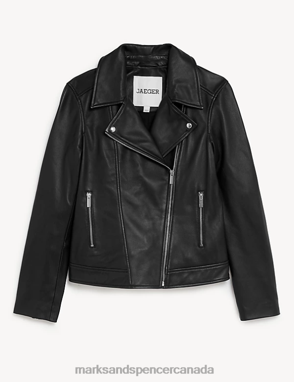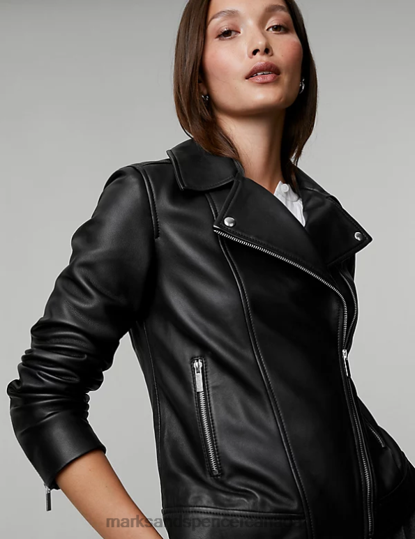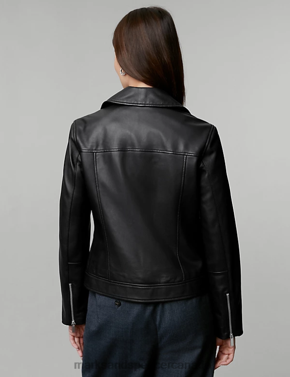 Women Black Clothing Marks & Spencer Leather Biker Jacket 20VTD1142 - Marks and Spencer outlet