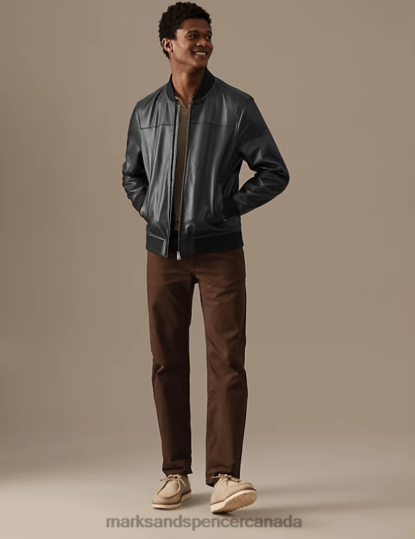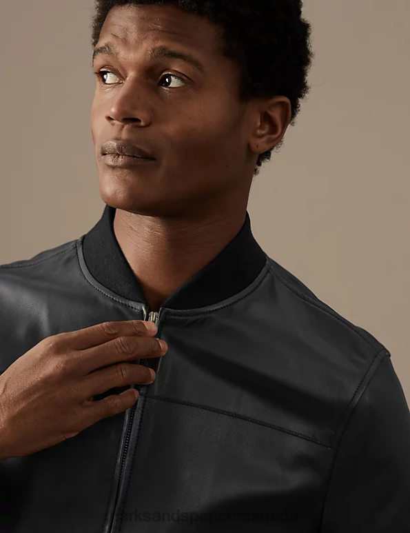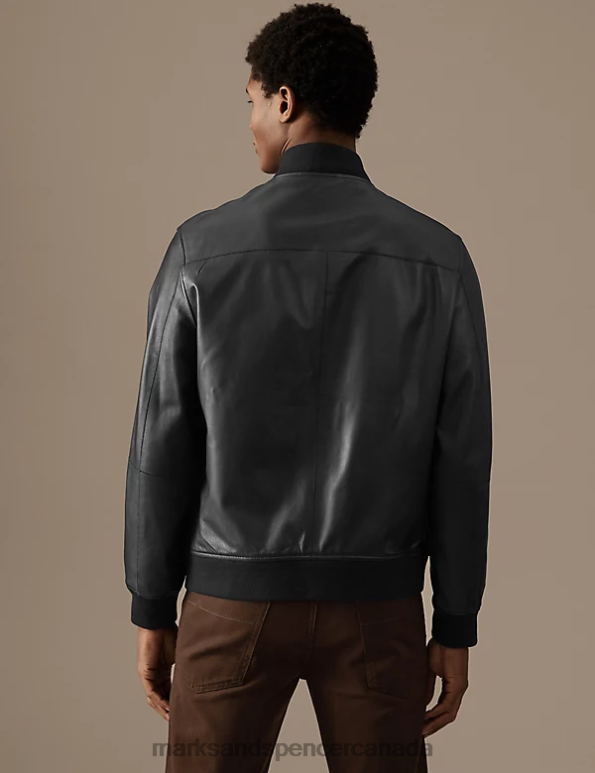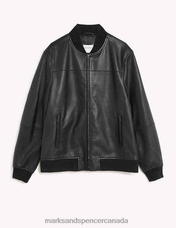 Marks and Spencer Canada - Men Black Clothing Marks & Spencer Leather Bomber Jacket 20VTD5387