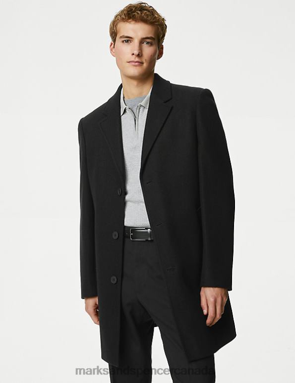 Men Black Clothing Marks & Spencer Revere Overcoat 20VTD5217 - Marks and Spencer outlet