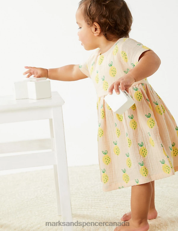Unisex Peach Clothing Marks & Spencer Pure Cotton Lemon Dress 20VTD7720 - Marks and Spencer outlet