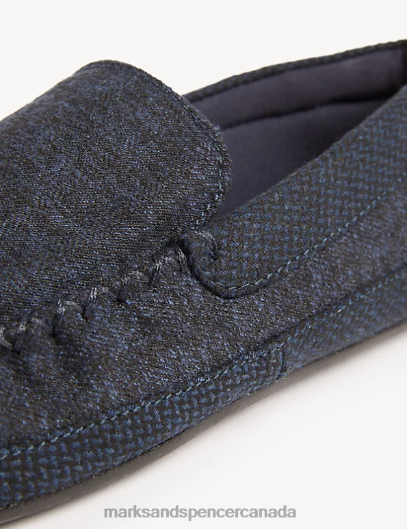 Laid-back days at home were made for these fabric moccasin slippers. Comfy slip-on style. Design features a herringbone pattern and stitched detailing around the edge for a classic look. M&S Collection: easy-to-wear wardrobe staples that combine classic and contemporary styles.