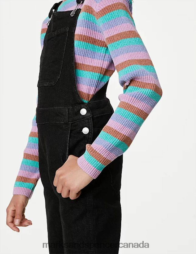 Clothing 20VTD9273 Black Kids Marks & Spencer Denim Flared Dungarees - Marks and Spencer outlet