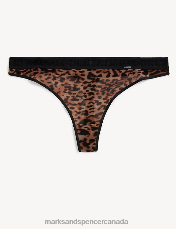 Go wild for this animal print thong from our Autograph collection. It's made from semi-sheer mesh with bonded seams for a light yet sturdy feel. Elastic trims create a secure fit and the waistband combines mesh with elastic for stretchy comfort. This thong is finished with a branded metal tag at the side. Autograph: refined fabrics and modern silhouettes for an effortless, understated style.