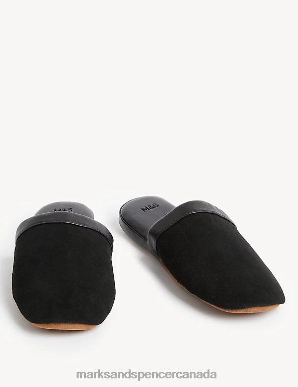 Marks and Spencer Canada - Men Black Footwear Marks & Spencer Suede Mule Slippers 20VTD6099