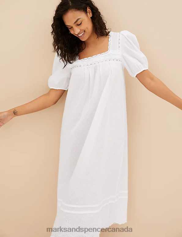 Unisex White Lingerie Marks & Spencer Pure Cotton Long Nightdress 20VTD3478 - Marks and Spencer online