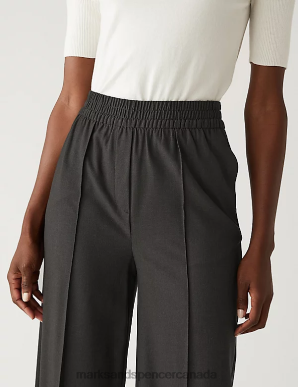 Marks and Spencer Canada - Women Charcoal Clothing Marks & Spencer Wide Leg Trousers 20VTD870