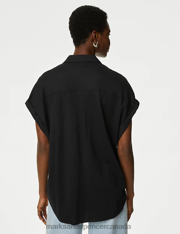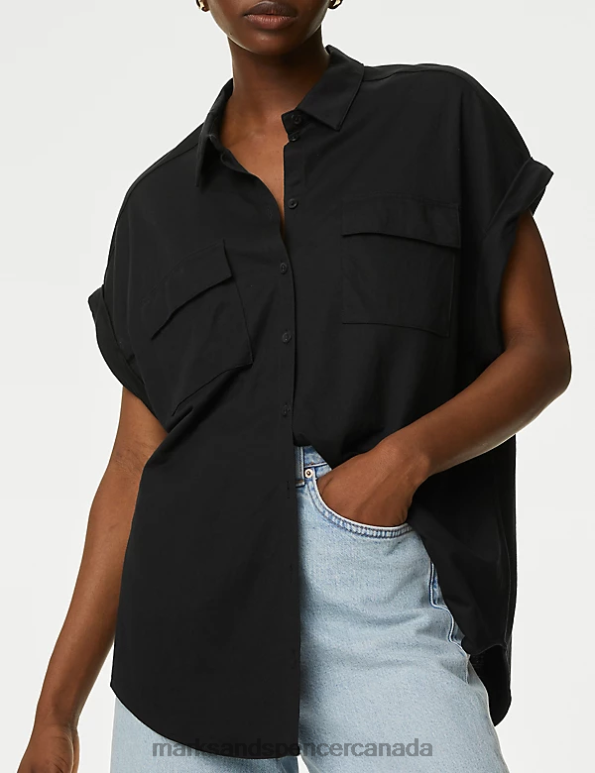 Women Black Clothing Marks & Spencer Jersey Collared Shirt 20VTD2647 - Marks and Spencer Canada locations
