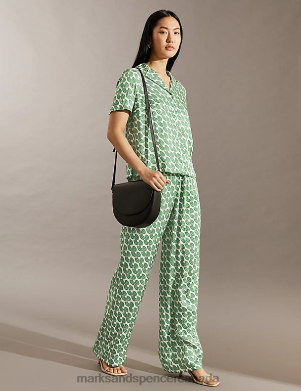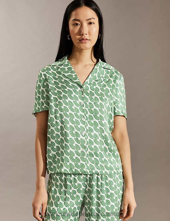 Women Green Clothing Marks & Spencer Geometric Collared Shirt 20VTD1116 - Marks and Spencer online