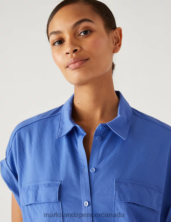Day-to-night dressing just got easier, thanks to this jersey shirt. Designed in a regular fit, with airy short sleeves. Button fastenings and a collared neckline offer a smart look. Complete with two flap pockets on the chest. M&S Collection: easy-to-wear wardrobe staples that combine classic and contemporary styles.
