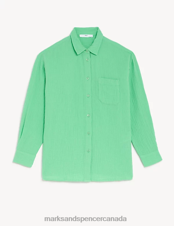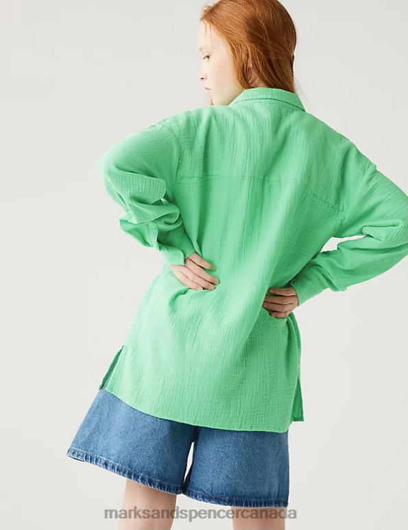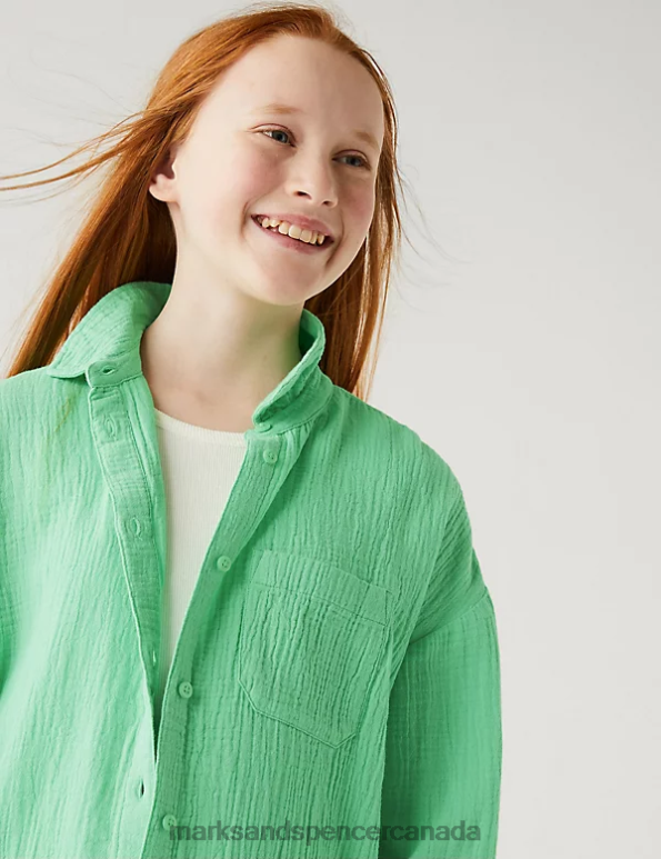 Kids Green Clothing Marks & Spencer Pure Cotton Shirt 20VTD8752 - Marks and Spencer outlet