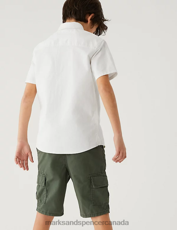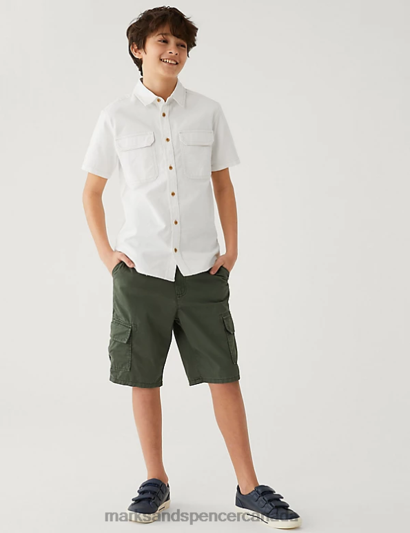 This pure cotton shirt brings extra smartness to your youngster's wardrobe. Comfy regular fit, with a neat collared neckline and easy short sleeves. Topstitched seams and patch pockets add cool utility detail. It's complete with contrast buttons through the front.