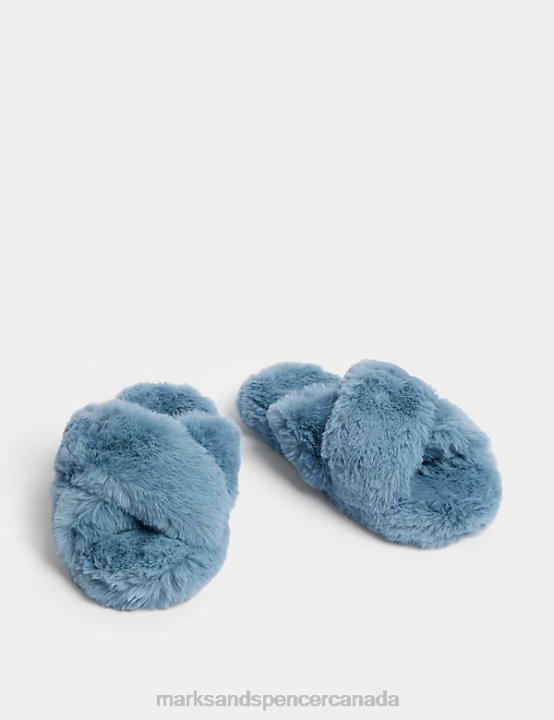 Marks and Spencer near me - Marks & Spencer Kids Faux Fur Slippers Footwear Blue 20VTD9020