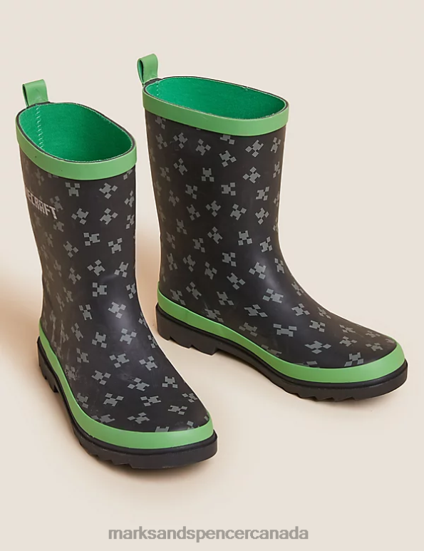 Marks and Spencer near me - Kids Black Mix Footwear Marks & Spencer Minecraft Wellies 20VTD8629