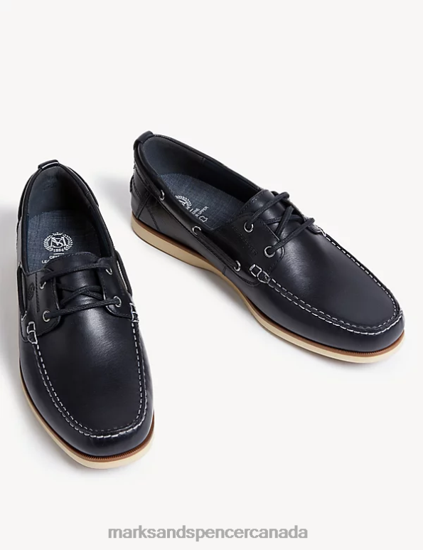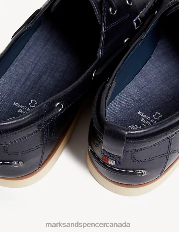 Men Navy Footwear Marks & Spencer Leather Deck Shoes 20VTD6596 - Marks and Spencer online