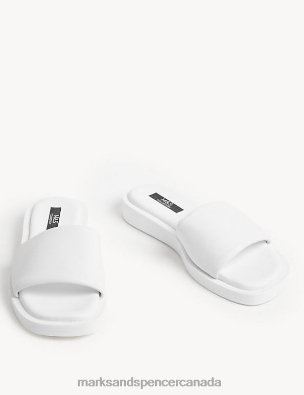 Women White Footwear Marks & Spencer Leather Flat Sliders 20VTD3040 - Marks and Spencer online