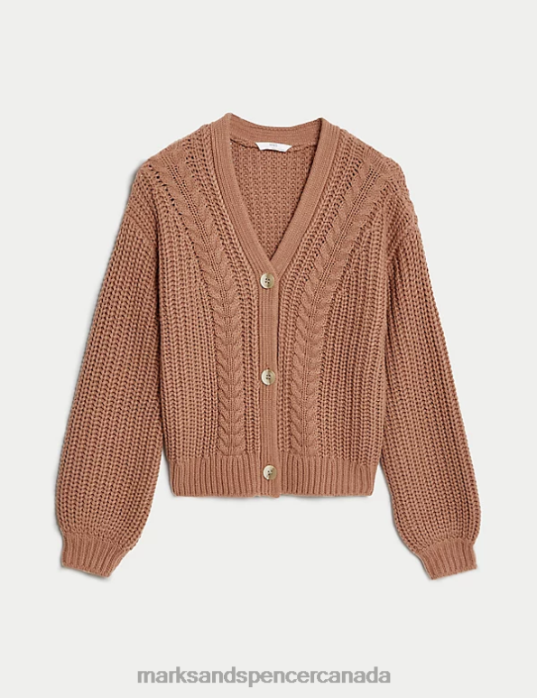 Kids Brown Clothing Marks & Spencer Cable Knit Cardigan 20VTD8853 - Marks and Spencer Canada locations