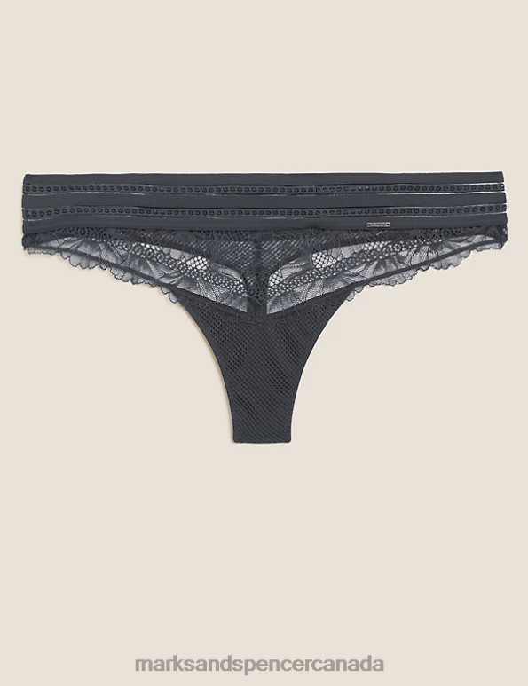 Unisex Charcoal Lingerie Marks & Spencer Marseilles Lace Thong 20VTD4580 - Marks and Spencer online