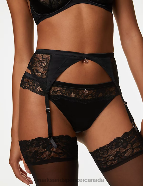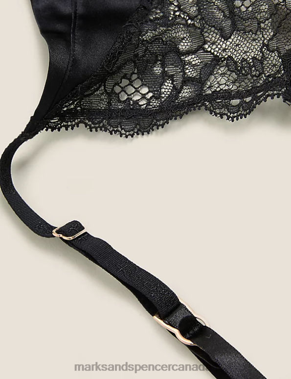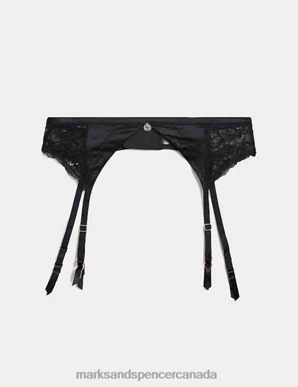 Unisex Black Lingerie Marks & Spencer Silk & Lace Suspenders 20VTD3937 - Marks and Spencer outlet