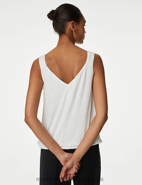 Marks and Spencer sale - Women White Clothing Marks & Spencer Sequin Cami Top 20VTD2179