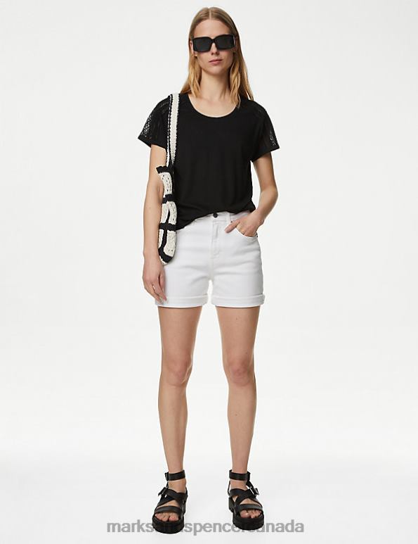 Women Black Clothing Marks & Spencer Linen Rich Broderie Top 20VTD2429 - Marks and Spencer Canada locations