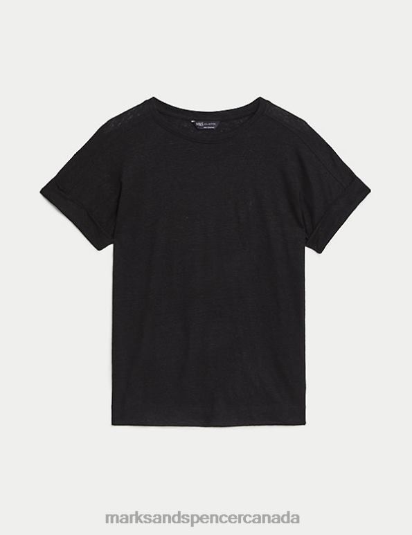 Women Black Clothing Marks & Spencer Linen Rich Top 20VTD377 - Marks and Spencer outlet