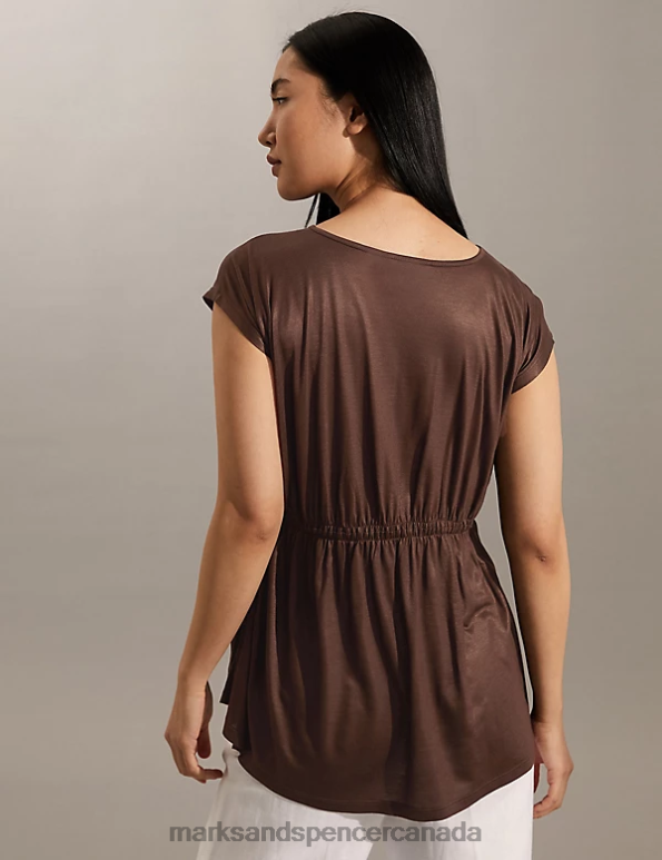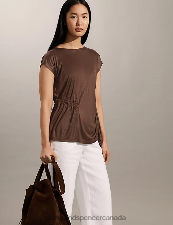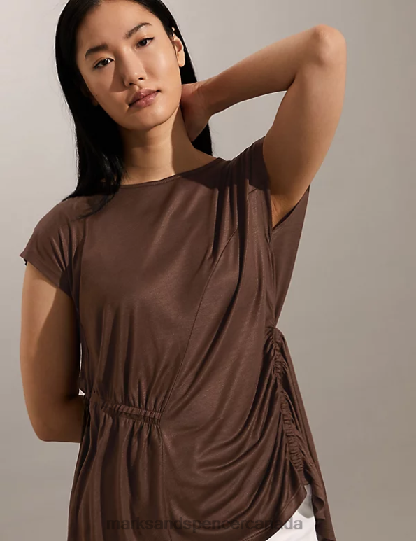 Women Brown Clothing Marks & Spencer Ruched Top 20VTD2542 - Marks and Spencer Canada locations