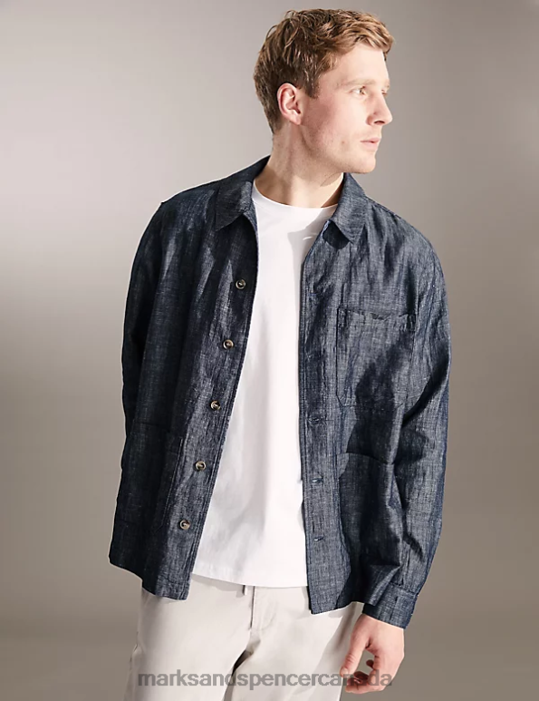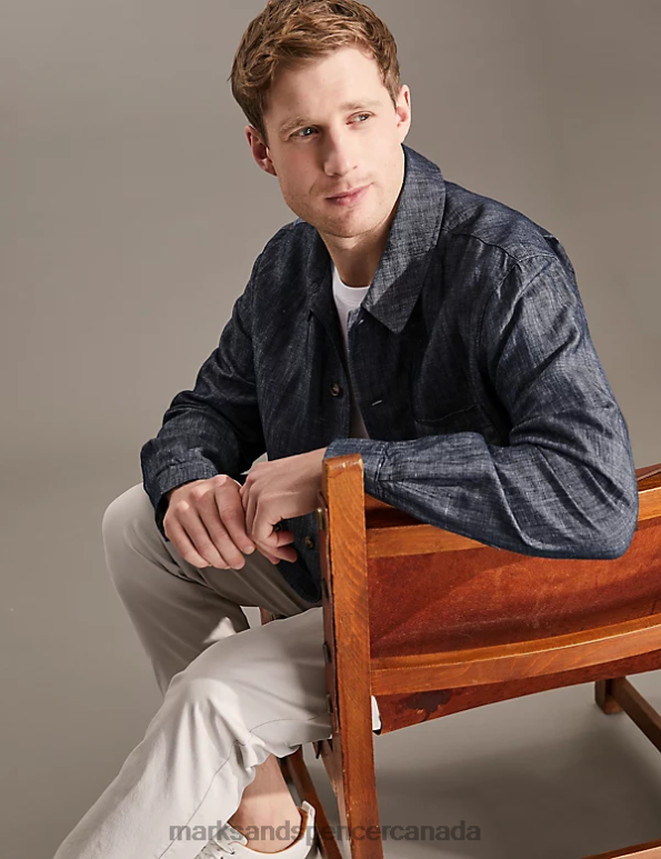 Marks and Spencer sale - Men Chambray Clothing Marks & Spencer Cotton Rich Overshirt 20VTD5479