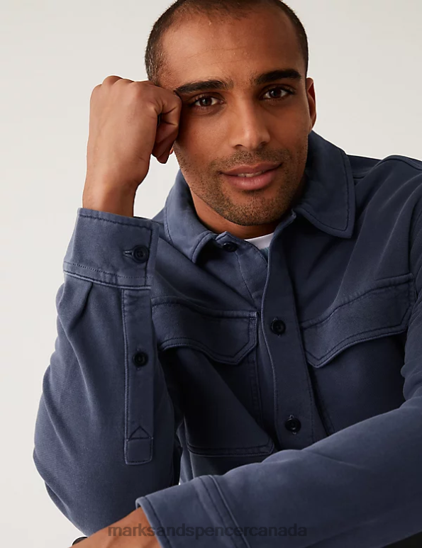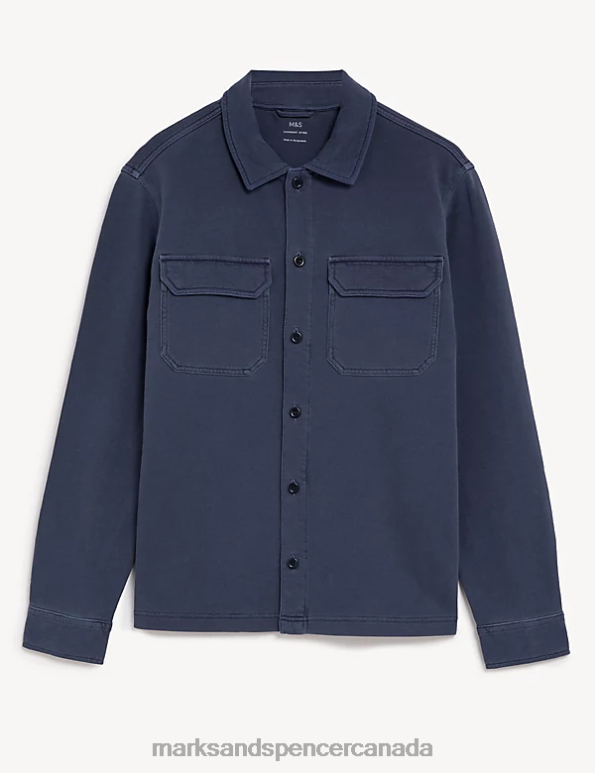 Men Blue Clothing Marks & Spencer Pure Cotton Overshirt 20VTD6597 - Marks and Spencer Canada locations