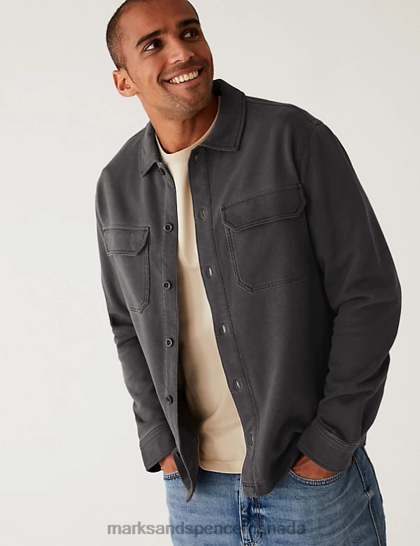Men Carbon Clothing Marks & Spencer Pure Cotton Overshirt 20VTD6942 - Marks and Spencer Canada locations