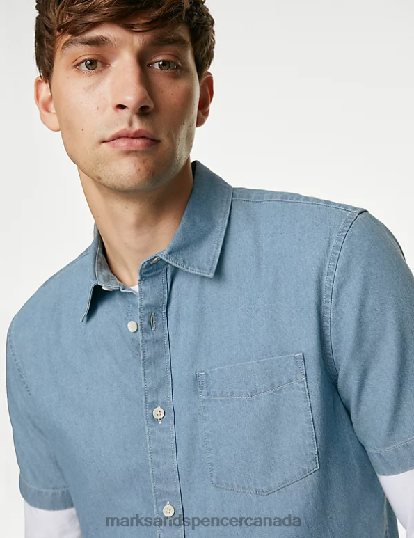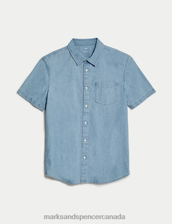 Men Light Blue Clothing Marks & Spencer Denim Shirt 20VTD5757 - Marks and Spencer Canada locations