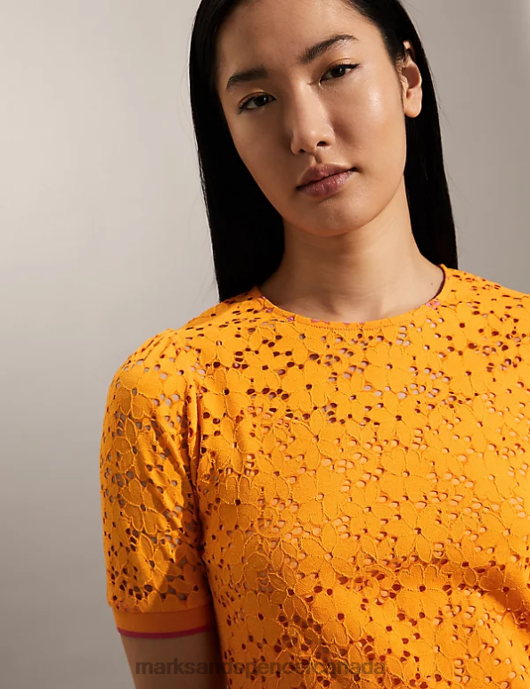 Marks and Spencer sale - Women Orange Clothing Marks & Spencer Lace T-Shirt 20VTD2622