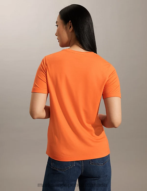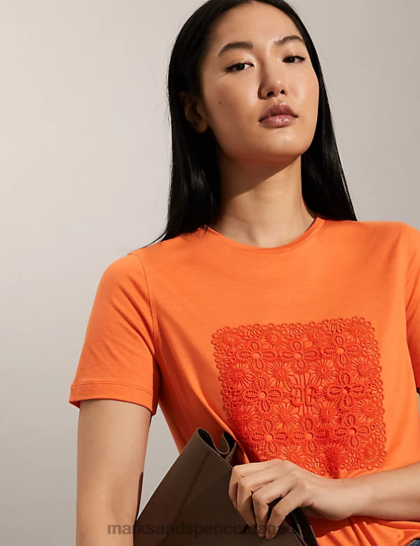 Women Orange Clothing Marks & Spencer Embroidered T-Shirt 20VTD2807 - Marks and Spencer outlet